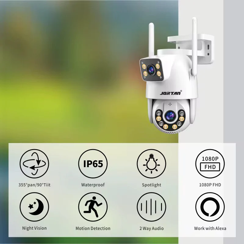 Camera de Supraveghere Duala Jortan 8K Ultra HD 8MP, Vedere color noaptea, Rotire 360°, 10X Zoom, inteligenta de urmarire, IP66, Acoperire Panoramică