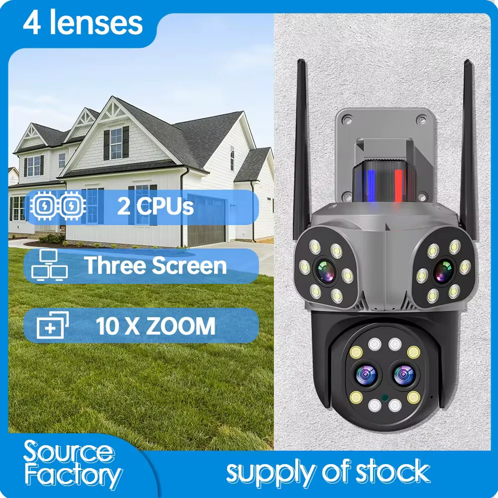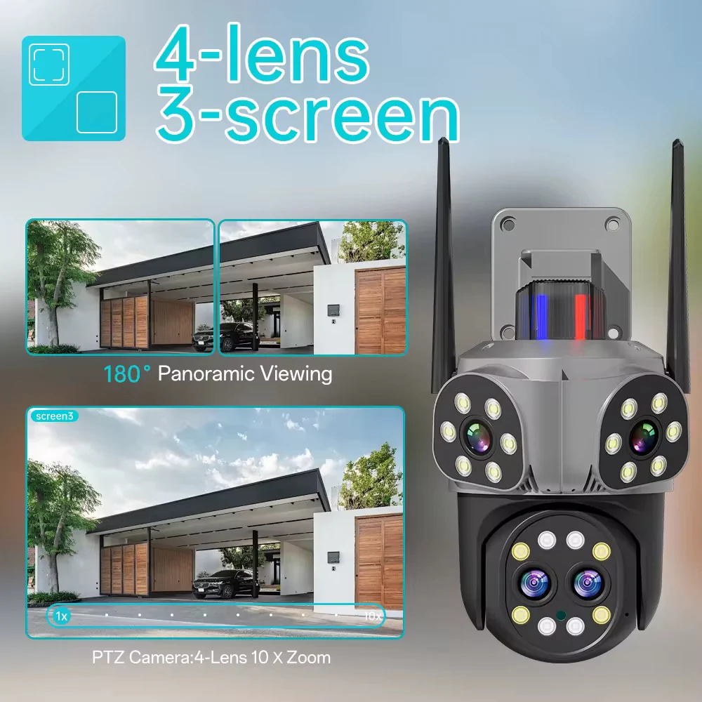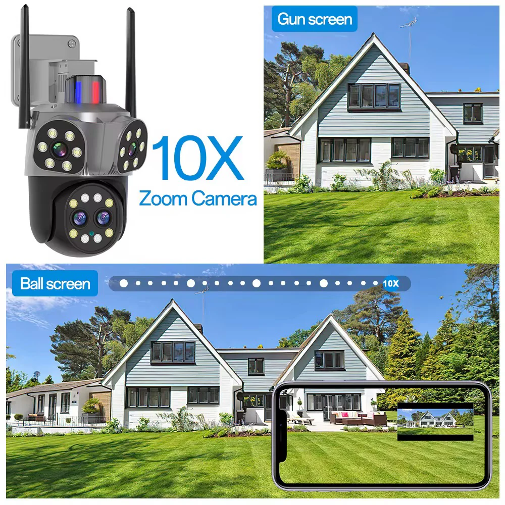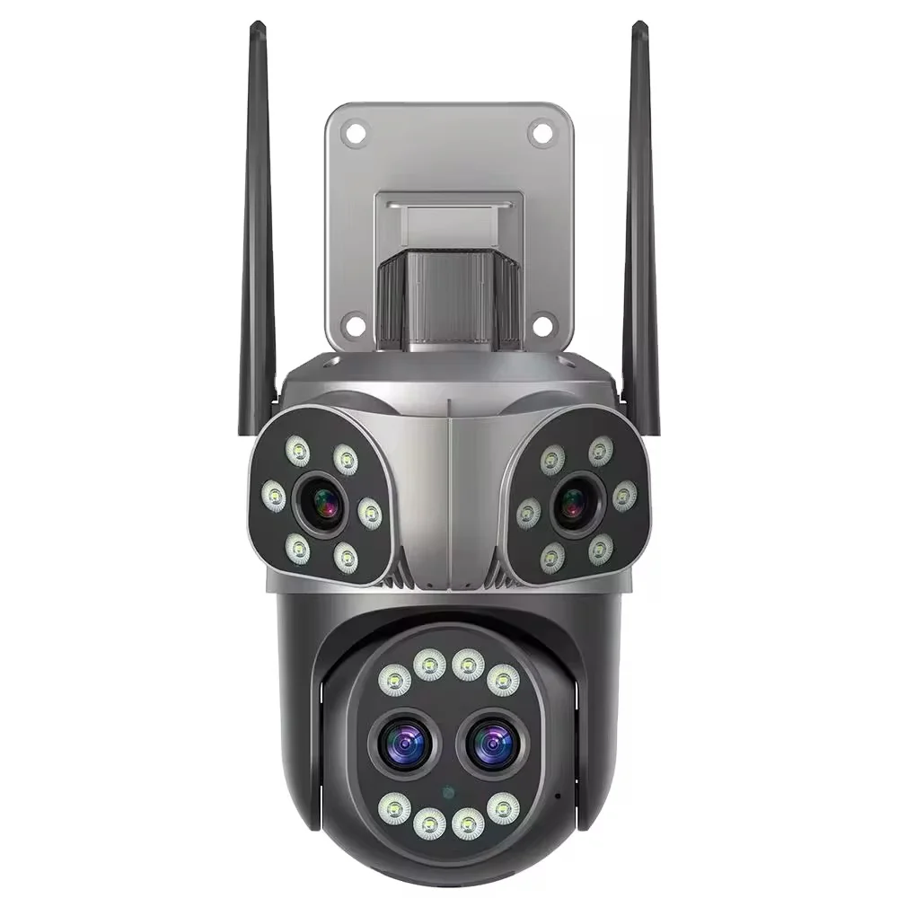 Camera de Supraveghere Tripla Jortan 6K Ultra HD 9MP, 4 Lentile Vedere nocturna color, Rotire 360°, Procesor AI, inteligenta de urmarire, Vedere Panoramica, IP66