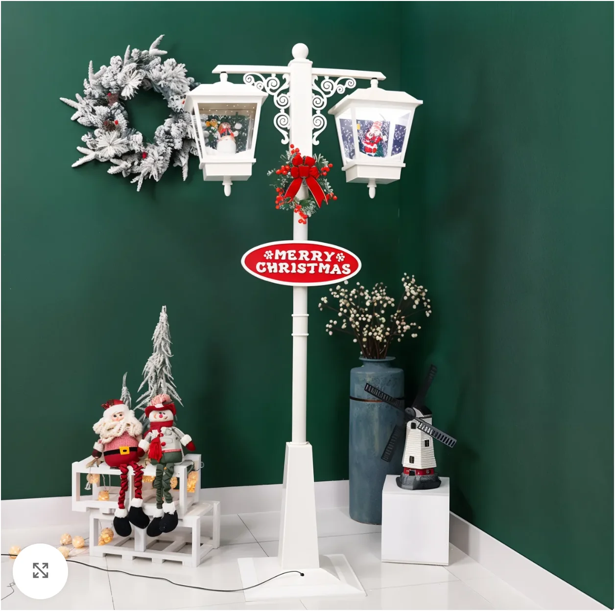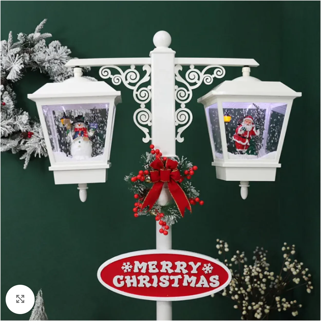 În interiorul felinarului, Moș Crăciun și Omul de Zăpadă prind viață într-un joc spectaculos de zăpadă în mișcare și lumini calde, creând o atmosferă feerică, perfectă pentru serile de iarnă.