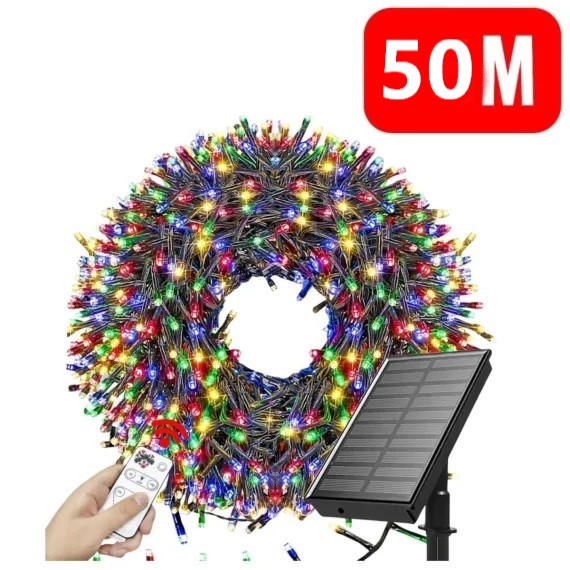 Instalație LED Crăciun 50M cu Panou Solar Lumini Multicolore RGB, 550 LED
