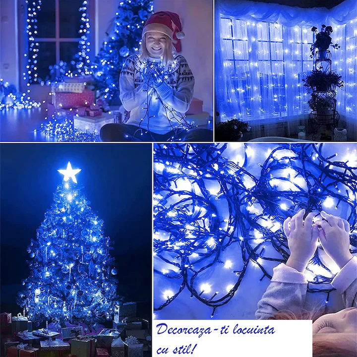 Instalația LED albastră de 30 metri transformă orice spațiu într-un loc deosebit, cu o lumină clară și uniformă. Este alegerea perfectă pentru cei care doresc un decor distinct, rafinat și de impact, oferind un echilibru între frumusețe vizuală, economie de energie și fiabilitate în timp.