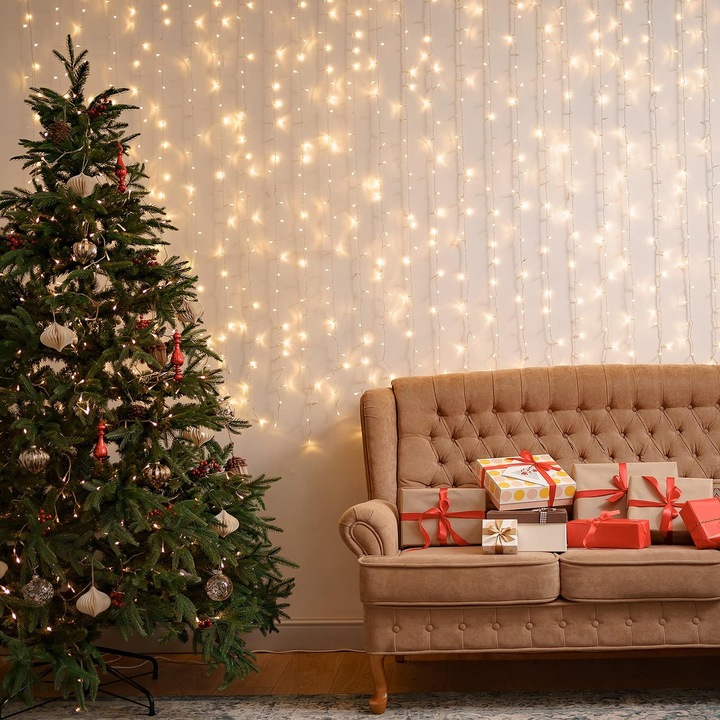 Creează o atmosferă de basm în casa sau în curtea ta cu Instalația LED tip perdea ploaie 5x2m, 600 LED-uri lumină alb cald – alegerea perfectă pentru decorurile de Crăciun, evenimente festive sau serile relaxante de iarnă.