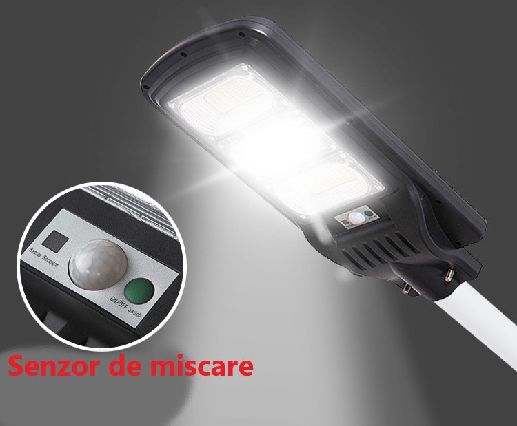 Lampa dispune de senzor de mișcare și senzor crepuscular (de lumină) care activează automat iluminarea doar atunci când este nevoie. În plus, telecomanda inclusă permite reglarea modurilor de funcționare (auto, continuu, temporizat) fără efort.