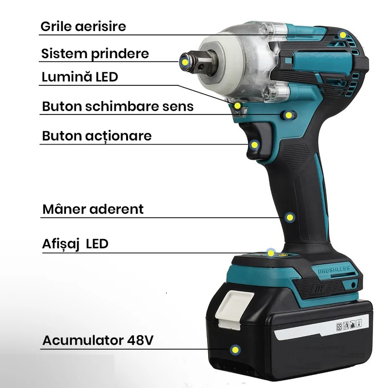 • Cuplu puternic de 130 Nm pentru lucrări grele