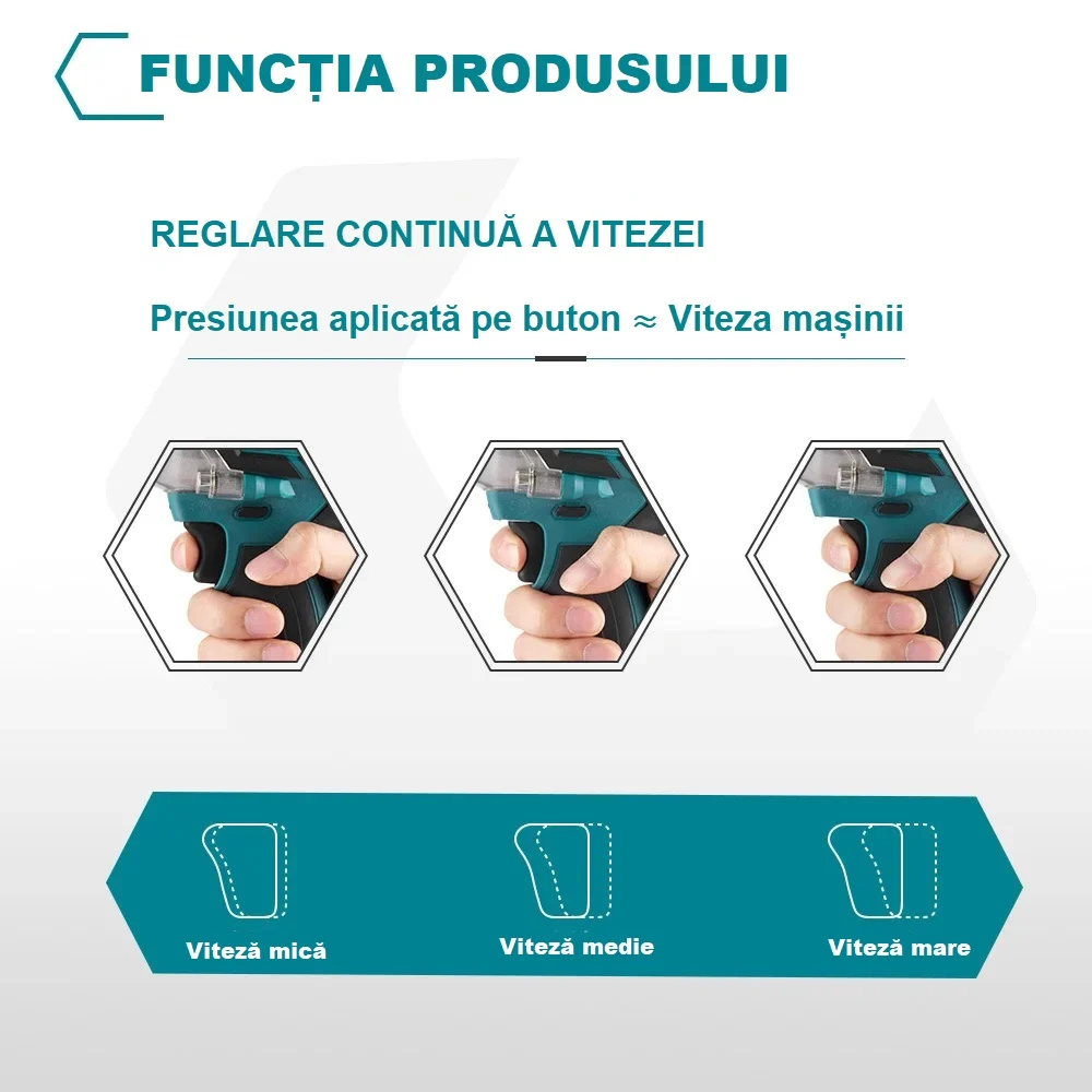 •Alege între 3 trepte de viteză pentru a adapta puterea în funcție de aplicație: