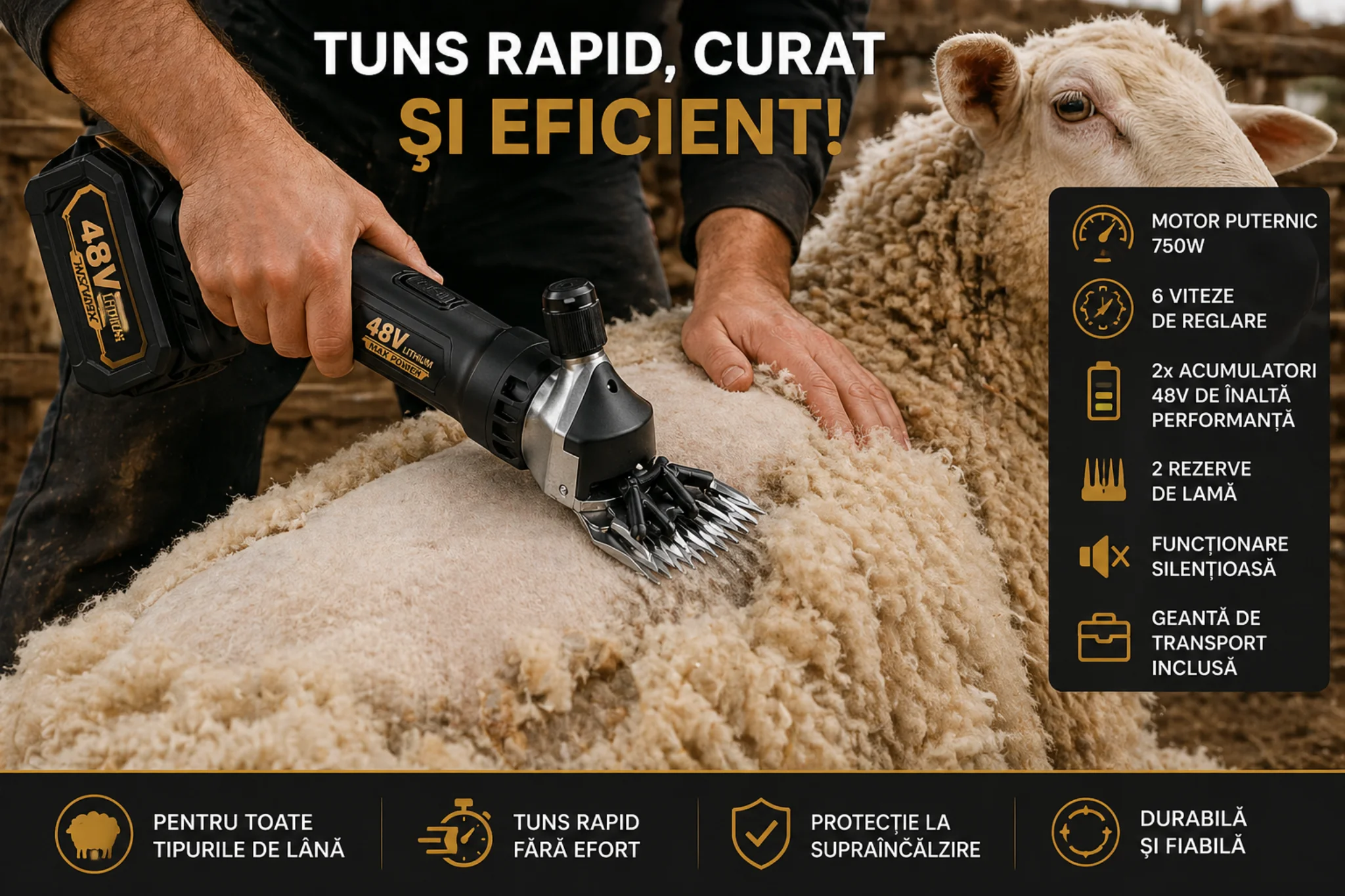 Această mașină de tuns profesională este soluția completă pentru o tundere rapidă, sigură și de calitate, fiind un instrument esențial pentru orice crescător care pune accent pe productivitate și rezultate impecabile.