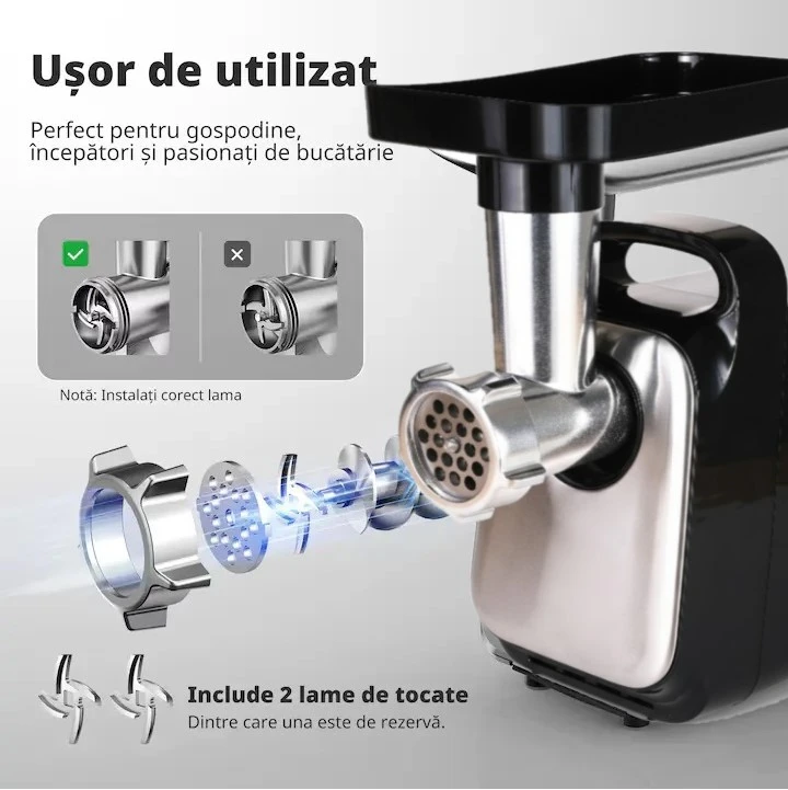 Perfectă pentru gospodării moderne, pasionați de gătit și chiar pentru micile afaceri care au nevoie de o soluție rapidă și eficientă pentru tocarea cărnii și legumelor.