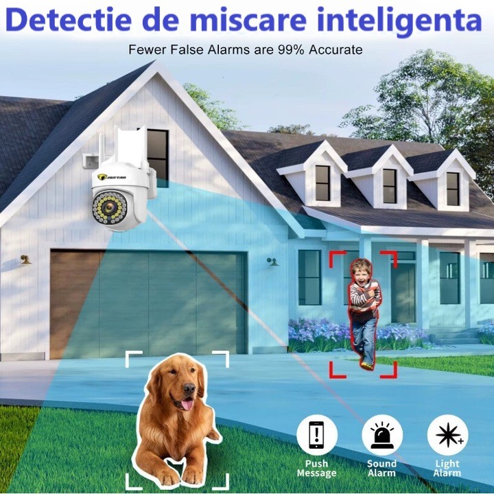 • Detectare inteligentă a mișcării umane – alarme doar când contează