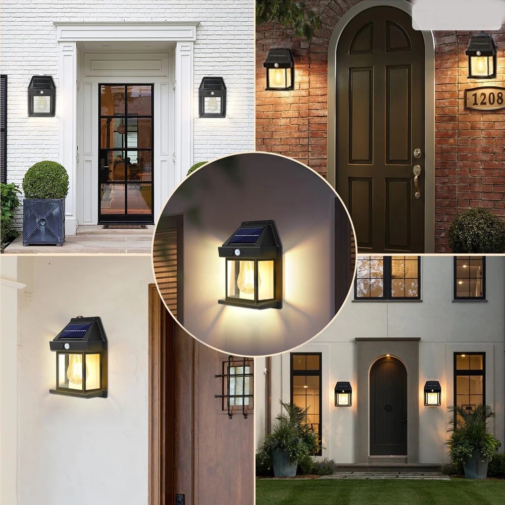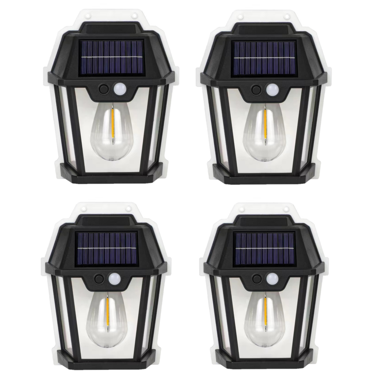 Set 4X Lampă Solară LED de Perete Tip Felinar cu Senzor de Mișcare 8m Iluminat Exterior, 3 Moduri Inteligente de lumina, Rezistență IP65, Ideală pentru Curte și Grădină