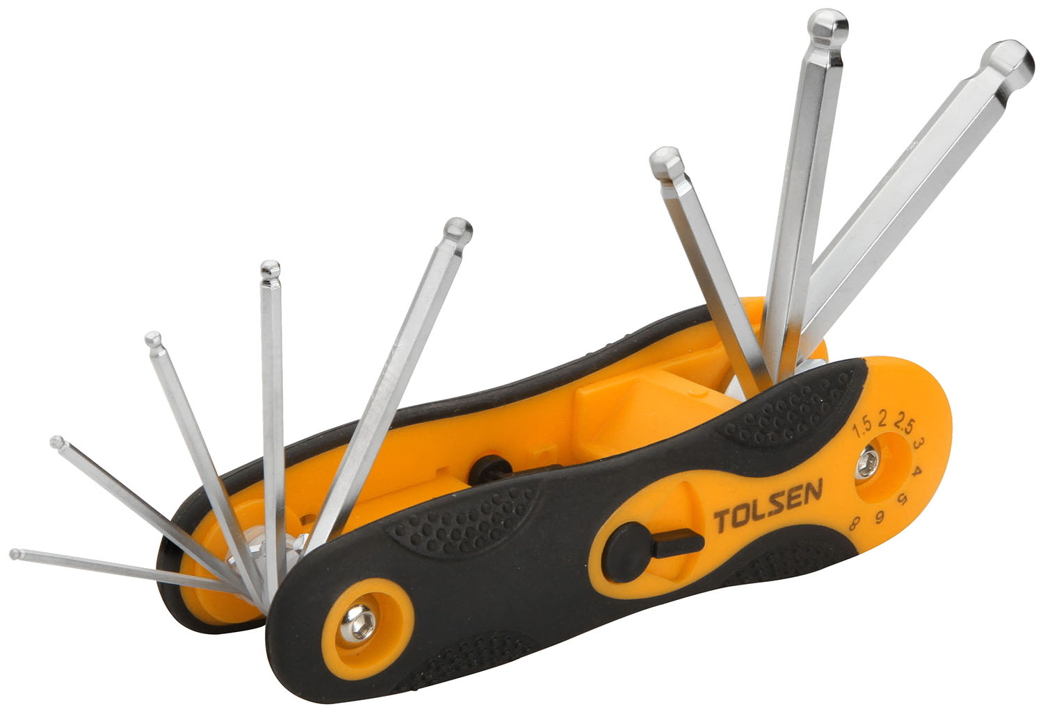 Set de 8 Chei Hexagonale cu Vârf Sferic Pliabile Cr-V, Tolsen